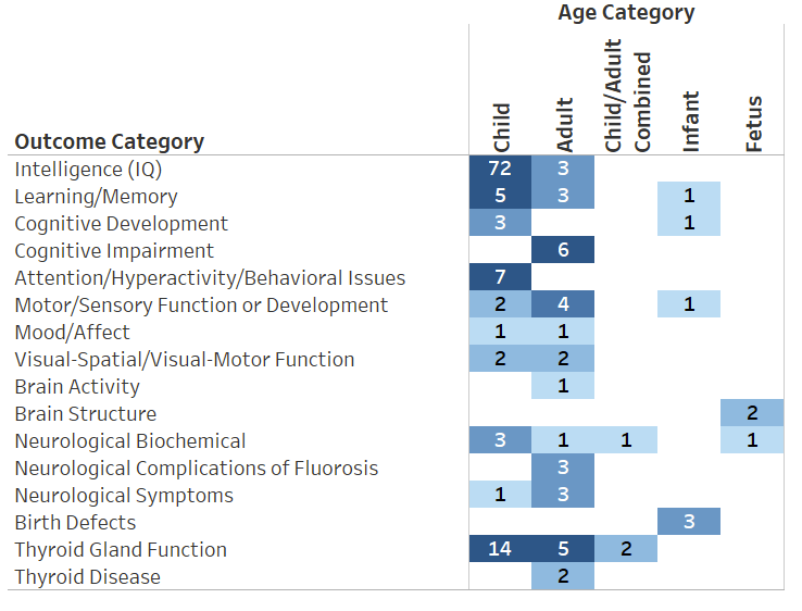 - 72 studies were identified by the National Toxicology Program (NTP); their conclusion was that high fluoride exposure was associated with lower IQ in children, and they drew this conclusion based on all of the covariates adjusted for in the literature. NTP were set to publish the report.