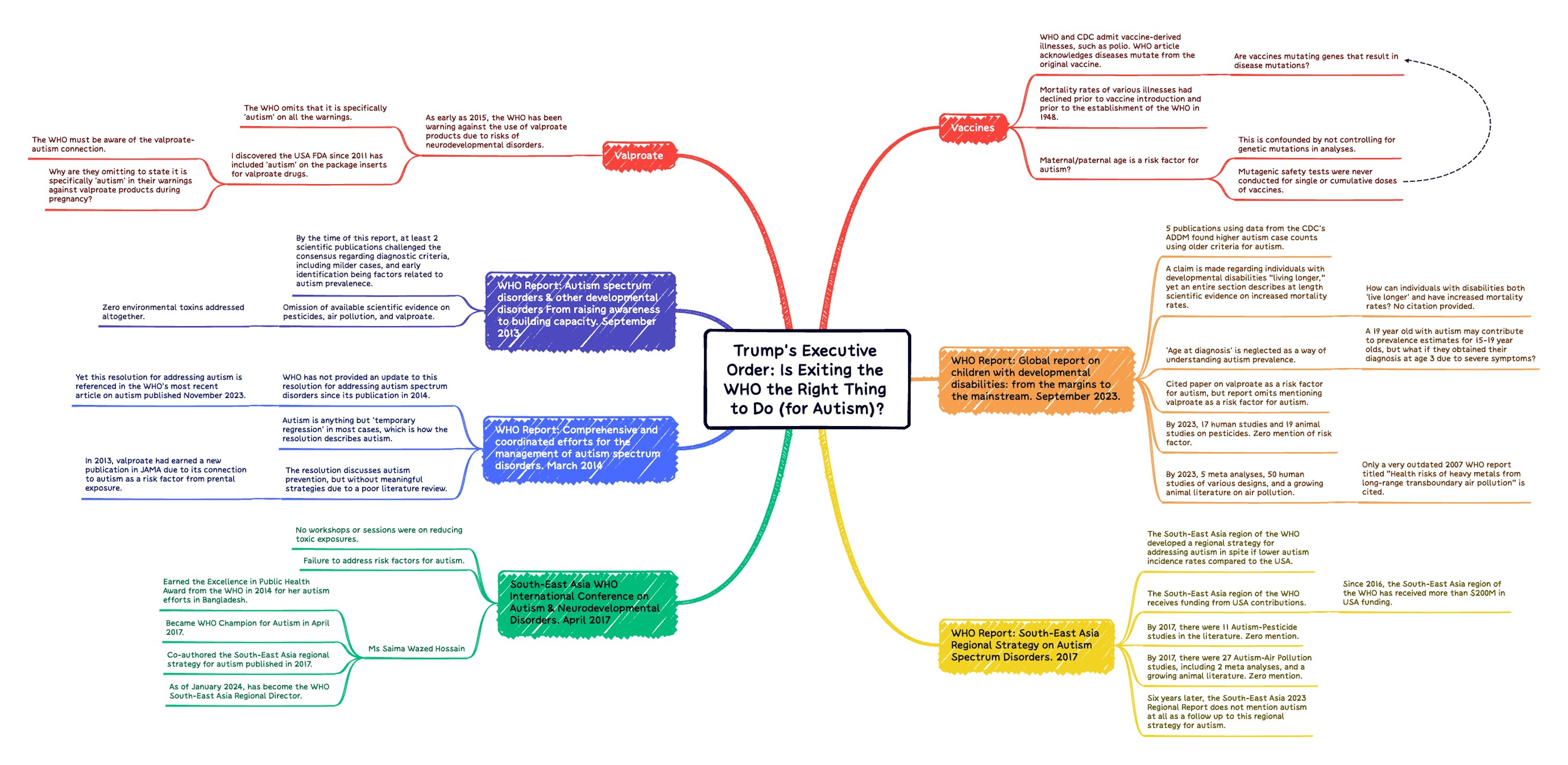 Overall Criticism: Once again, there is no mention of a ‘comprehensive and coordinated’ effort to address any toxins associated with autism. There is zero mention of environmental toxins in this resolution by the WHO Secretariat. The defense of vaccines given the WHO’s heavy funding from the vaccine industry is expected. However, by 2014, there were growing literatures on pesticides, air pollution, and valproate that were unacknowledged.