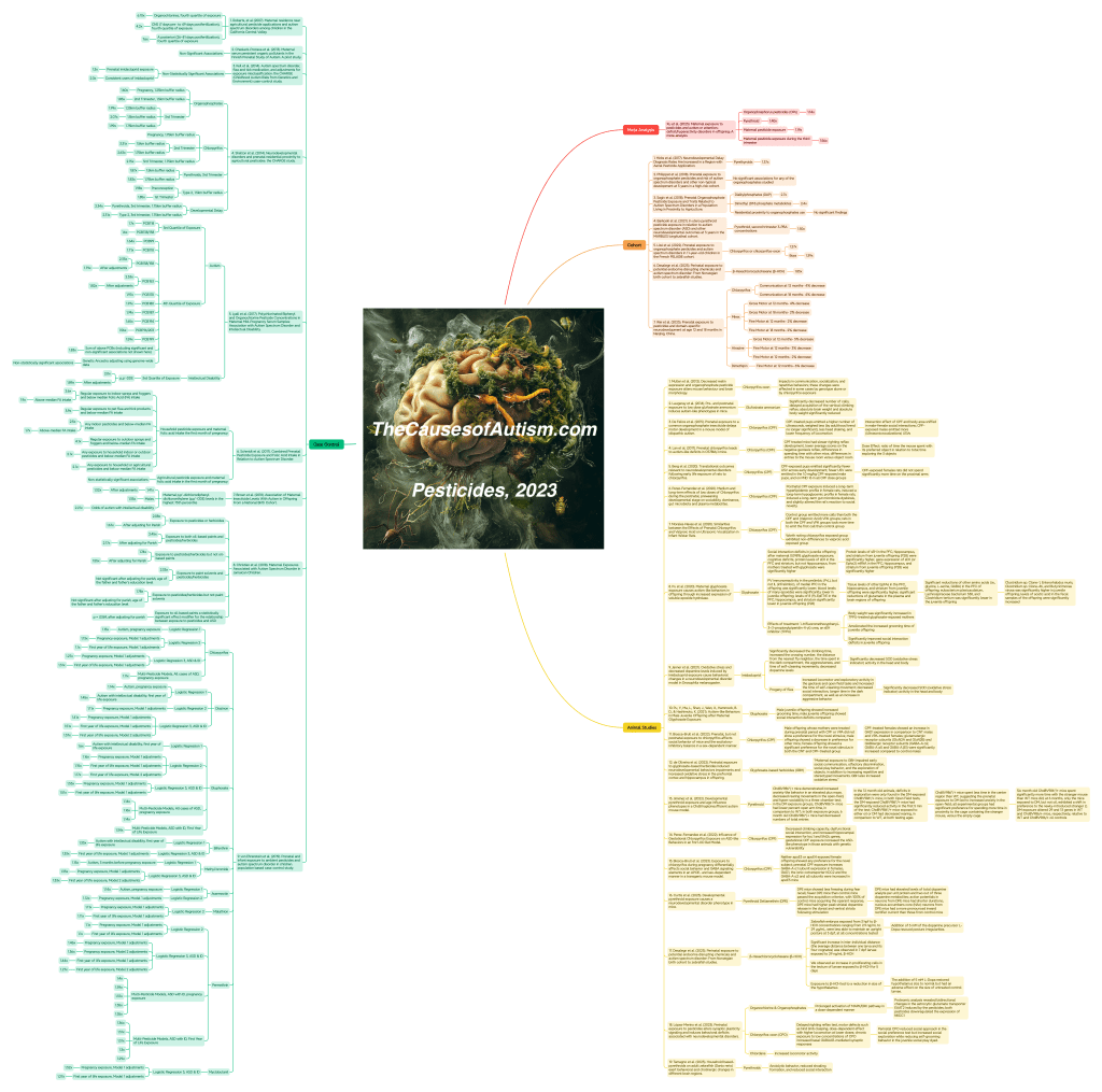 - Xu, Y., Yang, X., Chen, D., Xu, Y., Lan, L., Zhao, S., Liu, Q., Snijders, A. M., & Xia, Y. (2023). Maternal exposure to pesticides and autism or attention-deficit/hyperactivity disorders in offspring: A meta-analysis. Chemosphere, 313, 137459. https://doi.org/10.1016/j.chemosphere.2022.137459